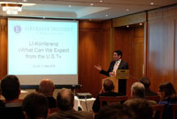 Nach 16 Jahren etatistischer Politik stehen die USA vor den nächsten Präsidentschaftswahlen offenbar vor einem politischen Scherbenhaufen. Seit dem Jahr 2000 ist das Land im Index wirtschaftlicher Freiheit vom 2. auf den 16. Rang zurückgefallen. Die Staatsschulden haben sich von 55 Prozent auf 104 Prozent des Bruttoinlandprodukts vervielfacht. Dennoch bleibt Amerika eine der unbestritten wettbewerbsfähigsten und innovativsten Volkswirtschaften der Welt. An der LI-Konferenz vom 3. Mai wurden die Perspektiven in der «Schwesterrepublik» der Schweiz im Wahljahr und darüber hinaus eingehend diskutiert und beleuchtet.
