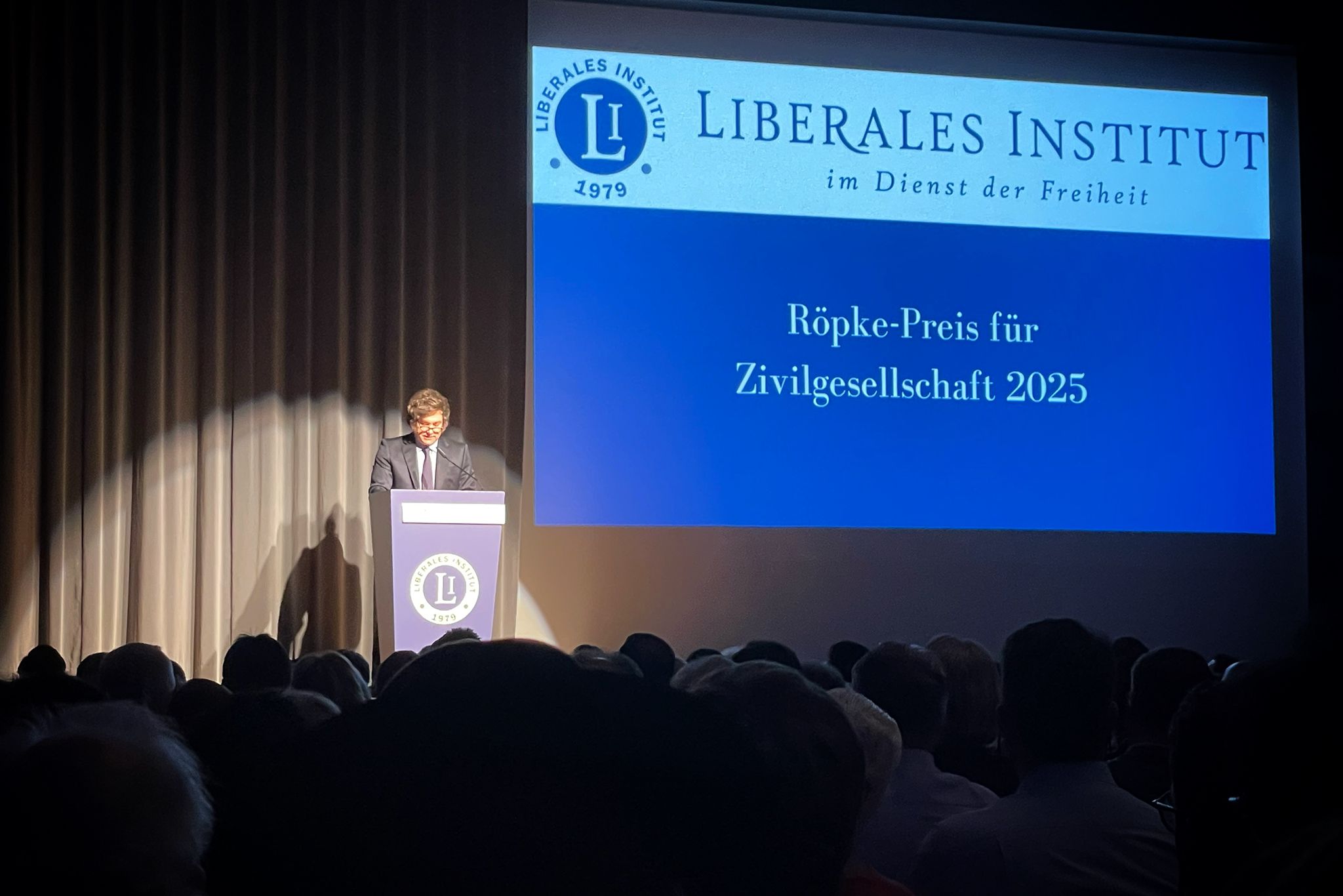 On January 24, 2025, the Liberal Institute awarded the Röpke Prize for Civil Society 2025 to Argentinian President Javier Milei for his international role model role in combating the sprawling state on the occasion of the traditional celebration of freedom.